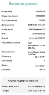 После совершения оплаты с использованием банковской карты необходимо сохранять полученные карт-чеки (подтверждения об оплате) для сверки с выпиской из карт-счёта (с целью подтверждения совершённых операций в случае возникновения спорных ситуаций).