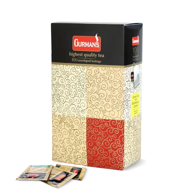 4 позиции чёрного, зелёного и фруктового чая в пакетиках на выбор. В коробке 100 пакетиков в индивидуальной упаковке.