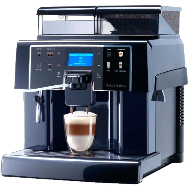 Обновлённая версия кофемашины Saeco Aulica Evo Focus для приготовления кофе и напитков на основе молока в больших офисах и HoReCa.