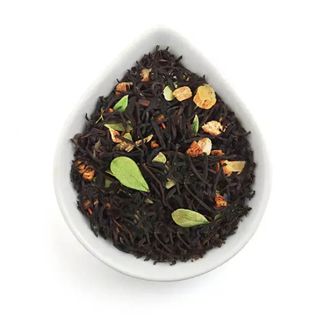 Листья черного чая, кокосовые хлопья, листья перечной мяты, кусочки клюквы, натуральный ароматизатор.