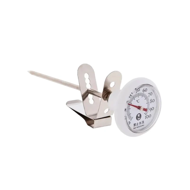 Простой и практичный в использовании термометр с клипсой-держателем предназначен для измерения температуры молока и других напитков.