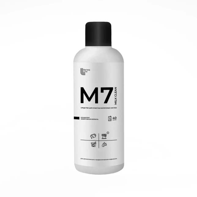 Одна бутыль содержит 1000 мл концентрированного раствора, которого хватает на несколько циклов очистки. Средство легко применять – достаточно развести его в воде и запустить стандартный режим промывки. М7 подходит для всех типов кофемашин и молочных систем, не оставляет посторонних запахов и обеспечивает бережный уход за оборудованием в кафе, ресторанах, офисах и дома.